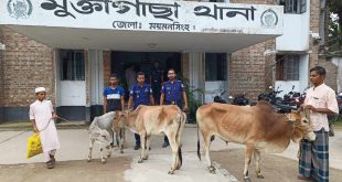 নেপাল ধরঃ ময়মনসিংহ মুক্তাগাছা থানার অফিসার ইনচার্জ মোঃ আব্দুল মজিদ জানান, শনিবার ২৬ আগস্ট জনৈক শফিকুল ইসলাম (৩৫), সাং- চন্ডিমন্ডপ, থানা- মুক্তাগাছা থানায় হাজির হইয়া লিখিত অভিযোগ দায়ের করেন যে, বৃহস্পতিবার ২৪ আগস্ট তাহার গোয়াল ঘরে ১টি ষাঁড় গরু, ১টি গাভী ও ১টি বাছুর গরু, যাহার সর্বমোট মূল্য অনুমান=২,১৮,০০০/-(দুই লক্ষা …